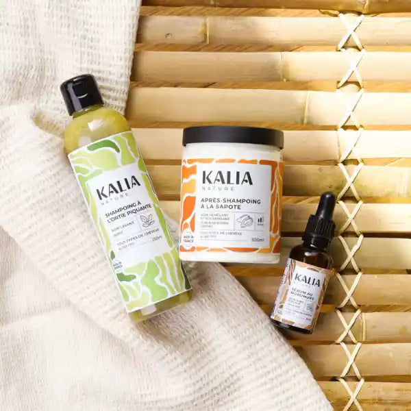 La routine Pousse Kalia Nature réunit 3 soins indispensables aux actifs naturels pour favoriser la croissance de vos cheveux.