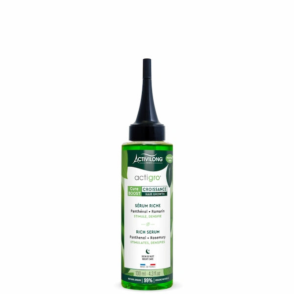 Riche en actifs assainissants et adoucissants, le Sérum Riche Actigro Activilong apporte une solution efficace aux chutes de cheveux et apaise les cuirs chevelus squameux.
