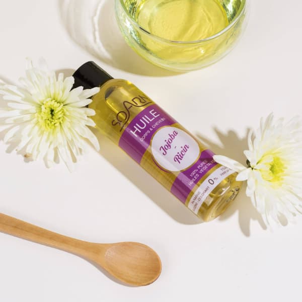 En mélange pour enrichir un lait corporel, en bain d’huile pour les cheveux, pour sceller l’hydratation ou fortifier les cils et les sourcils, l’huile Jojoba ricin est le véritable couteau suisse dans votre routine beauté.