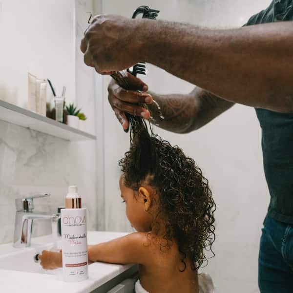 Pour les petites têtes crépues et frisées aux chevelures touffues et très épaisses, vous pouvez, dès 3 ans, switcher sur le Lait capillaire hydratant de la gamme Nefertiti.
