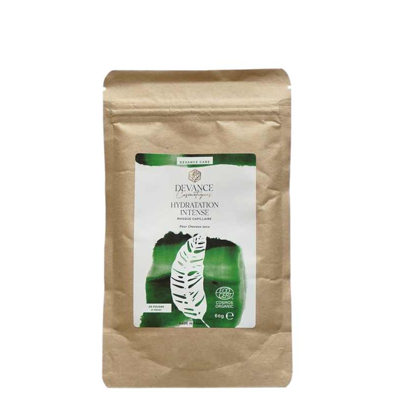 Le Masque capillaire Hydratation Intense Devance Cosmétiques est un soin en poudre concentré pour hydrater les cheveux secs sans les alourdir après le shampoing.
