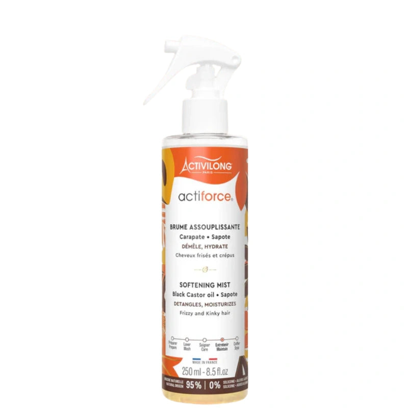Sans rinçage, la Brume Assouplissante ACTIFORCE aide à démêler et coiffer les cheveux frisés et crépus.