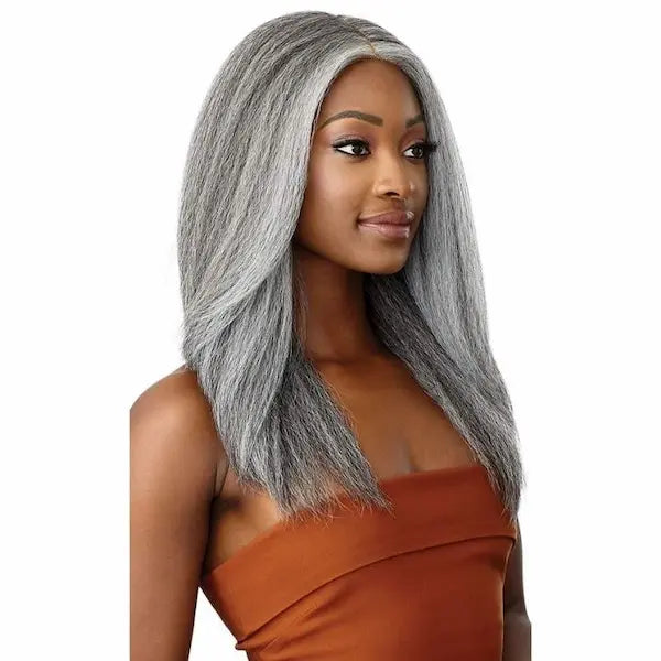 Adoptez la silver attitude avec la perruque longue grise Neesha 207 d' Outré Hair.