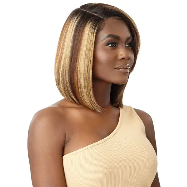 Adoptez un tout nouveau look avec la lacefront Dinella Outré Hair! Une perruque au carré plongeant pour un look élégant, classique et raffiné.
