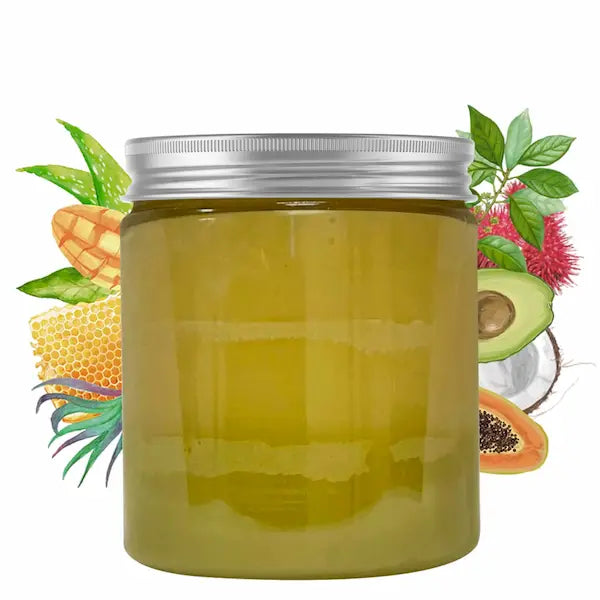 Miel : Hydratant, adoucissant et régénérant, il est riche en vitamines (A, B, C, D, H, K et PP), acides aminés, sels minéraux (calcium, potassium…) et oligo-éléments (cuivre, sélénium, zinc…). Grâce à sa teneur élevée en antioxydant, il préserve la jeunesse de la peau. Il hydrate en profondeur et redonne de l’éclat aux chevelures abîmées et sèches.
