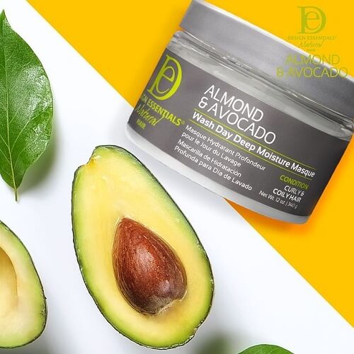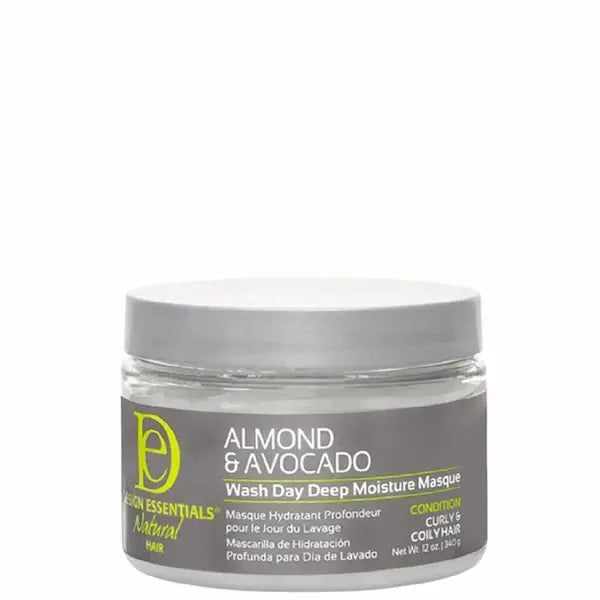 Une bonne routine sur cheveux texturés démarre par une bonne hydratation. Le masque d'hydratation profonde Natural Almond & Avocado Wash Day de Design Essentials® est un traitement hydratant très pénétrant imprégné des propriétés nourrissantes des huiles d'Amande douce et d'Avocat pour renforcer et adoucir les cheveux. Régénérant, Il réduit la casse et facilite le démêlage.