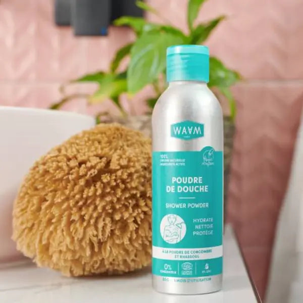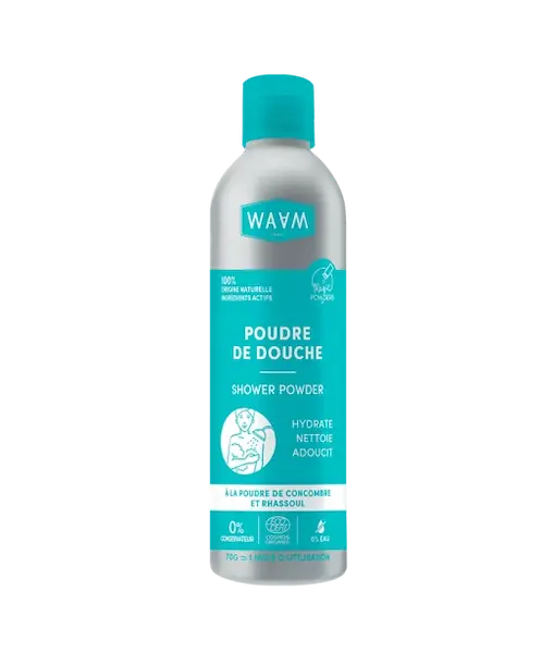 La poudre de douche Bio WAAM nettoie en douceur votre peau sans l'assécher et laisse une agréable sensation de bien-être après la douche.