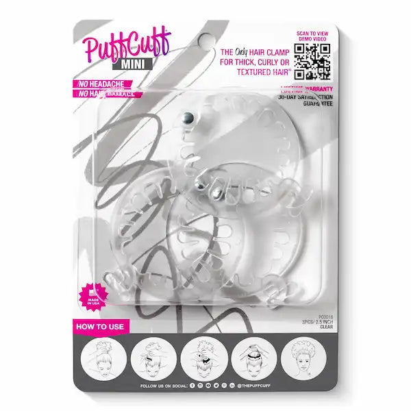 Vous trouvez la PuffCuff trop petite ? Ne forcez pas autour de vos cheveux. Rassemblez moins de cheveux ou utilisez la taille du dessus. La PuffCuff doit être sécurisée mais jamais serrée.