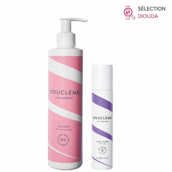 Le Duo Soin Hydratant protéiné combine 2 produits Bouclème pour 1 application :