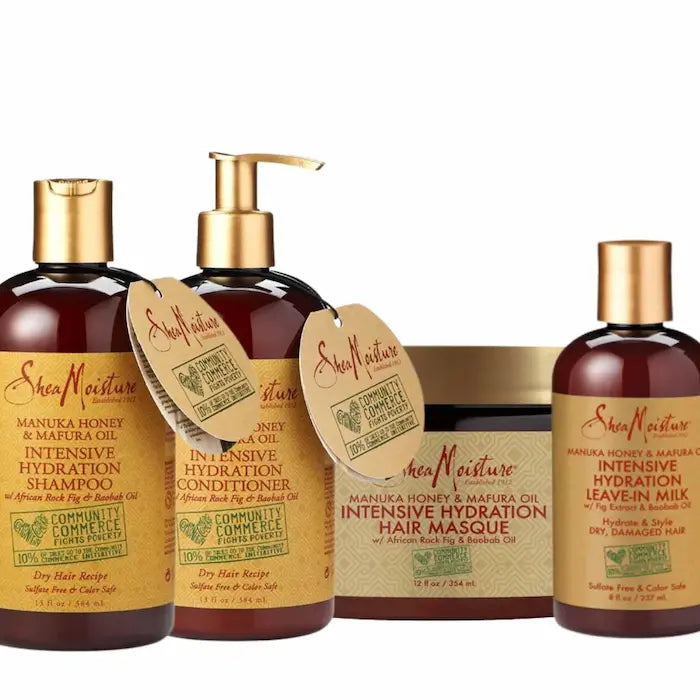 Formulée pour une hydratation intensive des cheveux, la gamme Manuka Honey & Mafura oil de Shea Moisture adoucit et démêle instantanément. Les cheveux apparaissent en meilleure santé. Ils sont doux, brillants, souples et le cuir chevelu est assaini. La fibre capillaire est réparée en douceur pour un effet revitalisant instantané.