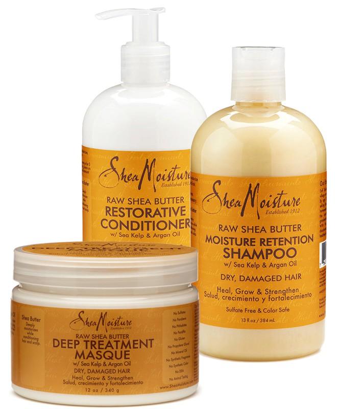 - Raw Shea Butter Moisture Retention Shampoo est un shampoing doux pour les cheveux secs, abîmés, assoiffés, colorés ou abîmés par le soleil.