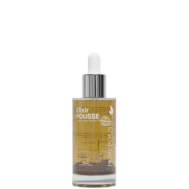 L’Élixir Pousse PurePousse est un concentré puissant d’huiles végétales et essentielles conçu pour stimuler la pousse, fortifier la fibre capillaire et apaiser le cuir chevelu.