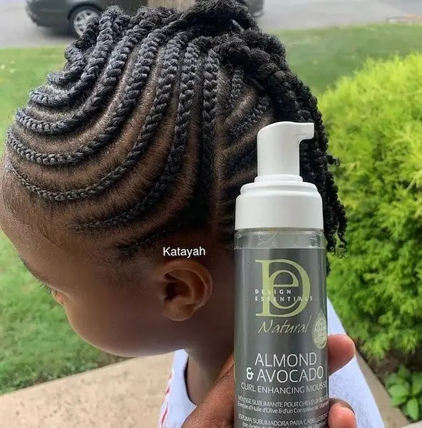 La Curl Enhancing Moussede Design Essentials Natural définit, embellit et maintient les boucles. Elle est absolument parfaite si vous aimez les coiffures rapides, le style Wash & Go ou, que vous recherchez une mousse pour vos coiffures protectrices.