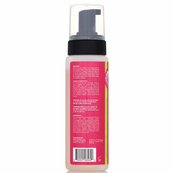 La mousse capillaire biologique contient des ingrédients naturels comme les huiles de babassu, buriti, muru muru et copaiba pour une hydratation durable qui emprisonne l'humidité dans les boucles tout en offrant une définition ultime.