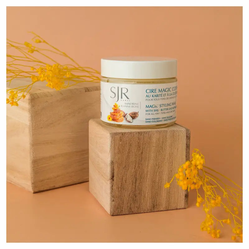 La Cire Magic Coiffante SJR renforce et régénère jour après jour les cheveux affaiblis ou abimés par les traitements chimiques sans les alourdir.