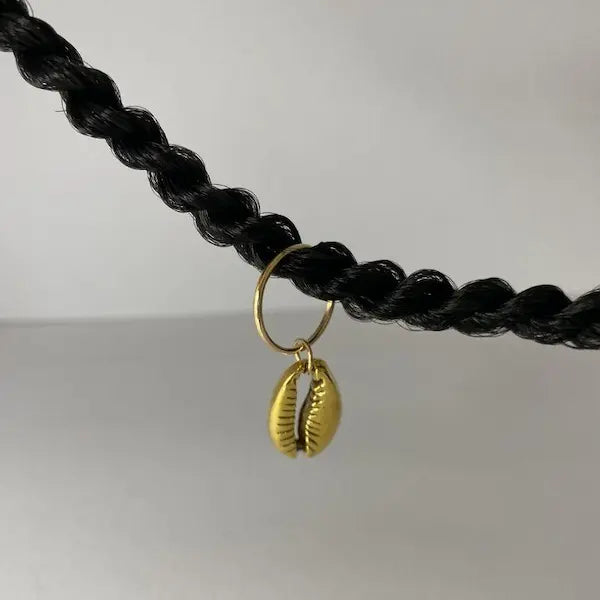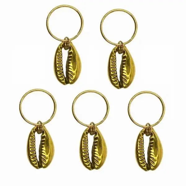 Ajoutez à vos tresses, vanilles, locks… ces bagues pour cheveux dorées résolument chics avec une breloque en forme de coquillage Cauri.