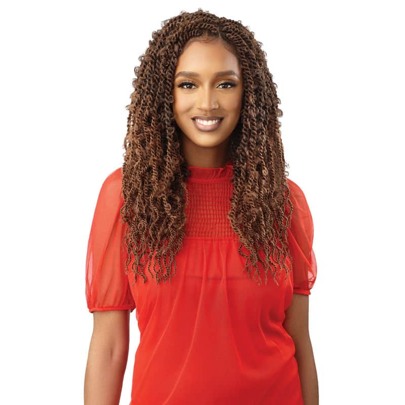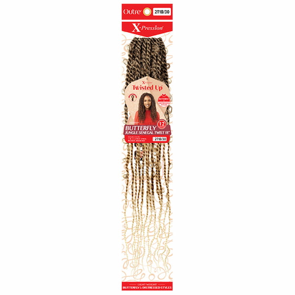 Votre coiffure de protection et un look tendance en deux fois moins de temps et directement chez vous avec les mèches pour crochets braids Butterfly Jungle Senegal Twist Twisted Up d'Outré Hair.