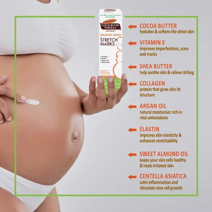 La Crème de Massage anti-vergetures Palmers doit son efficacité à sa composition unique. Elle est enrichie en :