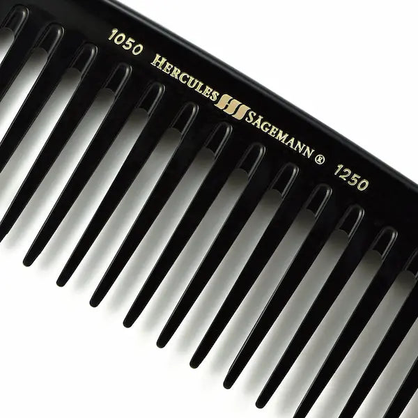Doté de dents larges et bien espacées aux bouts arrondis, le peigne Hercules Sägemann 1050-1250 est parfait pour démêler en douceur, coiffer et styliser les cheveux bouclés, épais et/ou volumineux.